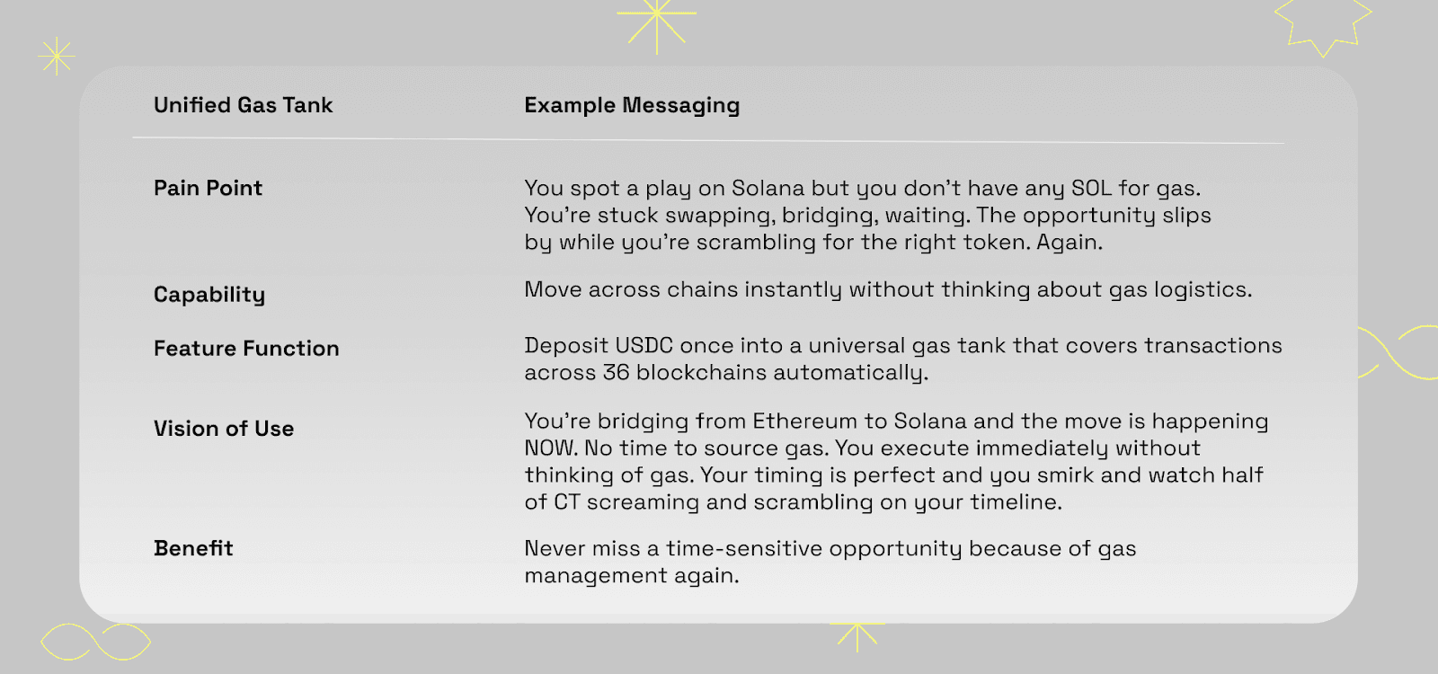Let's say you're targeting crypto natives: moderate to aggressive speculators chasing financial freedom, hanging out on CT and Discord, constantly bridging and swapping across chains in search of the next round trip.